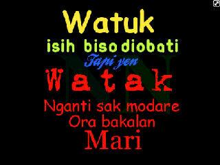 Gambar animasi lucu ini berbahasa Jawa isinya: WATUK isi iso diobati, Tapi Yen WATAK nganti sak modare ora bakalan MARI. Artinya Batuk masih dapat diobati kalau WATAK sampai mati ga mungkin sembuh, ha ha ha begitu kira-kira ya. Kalau salah maapin ya.